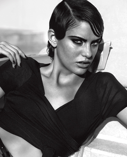 Patrząc na te zdjęcia mam wrażenie, że zatrzymaliśmy się gdzieś na rozpalonym słońcem pustkowiu między Trynidadem, Surinamem i Gujaną Brytyjską. Gdzieś na przełomie lat ’20 i ’30. Wystarczy tylko spojrzeć na fryzurę Alejandry Alonso do złudzenia przypominającą tę, którą nosiła słynna tancerka Josephine Baker (pamiętacie jej erotyczne, elektryzujące zdjęcia z początku wieku?). Portrety są mocną częścią tej sesji. Niesamowita twarz, nieco androgeniczna, Ruby Aldridge i delikatne rysy Alejandry składają się na interesującą całość.