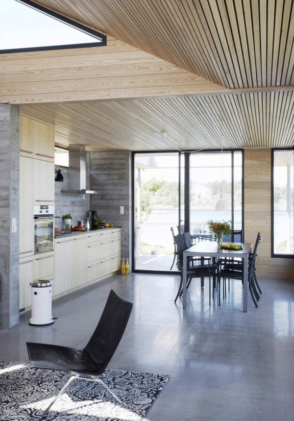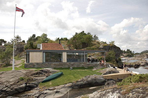 Skåtøy – jak wymówić nazwę tego letniskowego domku znajdującego się na jednej z licznych wysepek południowej Norwegii? Nie jestem pewna. Wiem jednak, że tę drewniano – kamienną konstrukcję, projektu Filter Arkiteketer, z chęcią zaadoptowałabym do własnych potrzeb. Cały projekt oparty jest na planie dawnej chatki, która stała tu od lat ’40 ubiegłego wieku. Właściciele chcieli zachować dawne rozmieszczenie budynku i na tym samym planie wznieśli coś zupełnie nowego. Obecna konstrukcja składa się z dwóch poziomów. Każdy to harmonijna aranżacja zdominowana przez drewno, kremową biel i odcienie szarości. Pierwszy poziom, znajdujący się wyżej, składa się z trzech sypialni, toalety i…kabiny prysznicowej usytuowanej już na zewnątrz domku. Drugi, zdecydowanie niższy, mieści przestronny salon połączony z jadalnią i kuchnią. Jednak najpiękniejsza część czeka nas na zewnątrz. Dokładnie na wprost salonu rozciąga się pokaźny taras z wygodnymi krzesłami ogrodowymi..i widokiem na zatokę. Nic, tylko usiąść, okryć się kocem i chłonąć pierwsze promienie wiosennego słońca! Cudo!