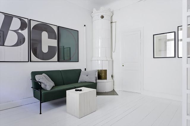 nie wiem, co myśleć o butelkowej zieleni 🙂 z jednej strony przekonuje mnie sama idea mocnego zielonego akcentu, ale z drugiej strony… – nie lubię, gdy we wnętrzu jest aż tyle bieli, dla mnie trochę zbyt zimno.