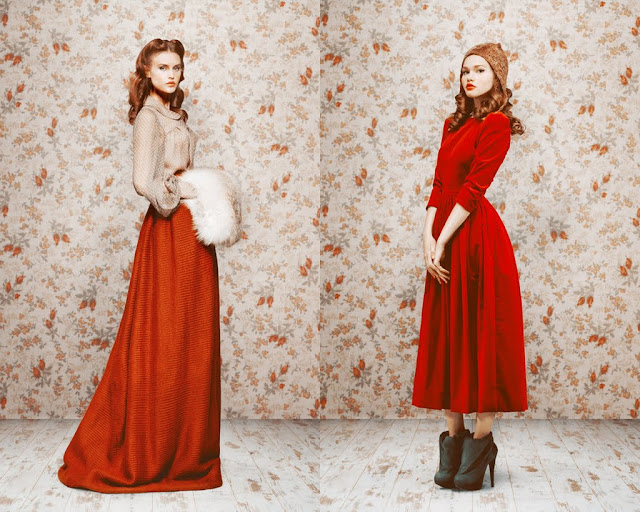 O rosyjskiej modzie nie wiem właściwie nic. Informacje z Moskiewskiego Tygodnia Mody raczej do mnie nie docierają, zagraniczni blogerzy nie piszą o nim namiętnie a magazyny nie ułatwiają nam poszukiwania. Zresztą, kto dziś patrzy na Wschód? Oprócz tamtejszej edycji Vogue’a i Tatlera (obydwie świetne!) nie wiele się o mistrzach rosyjskiego designu mówi. Mimo tego, że śledzę kilka tamtejszych stron, prawdziwe perły wyłowić trudno. W informacjach z „frontu wschodniego” dominuje strona etoday.ru zbierająca informacje ze świata mody, design’u, sztuki i architektury. Kilka dni temu został tam opublikowany debiutancki lookbook rosyjskiej fotografki i projektantki Ulyany Sergeenko. Ulyanę zauważyło już kilka blogów z modą uliczną (klik), ale dopiero jej kolekcja na sezon jesienno – zimowy wywołała ogromne zainteresowanie. Retro w najczystszym wydaniu, połączenie Czerwonego Kapturka z Oślą Skórką ( pamiętanie Catrine Denevue w tej roli?), Anny Kareniny z lookiem pensjonariuszki. Czego tutaj nie ma?!!! Suknie do ziemi przeplatają się z moherowymi, prześwitującymi sweterkami, futrem (niestety), grubą wełną, sukienkami w łączkę, bluzkami z jedwabiu w kropki, welurem. A na głowie modelek, niczym wisienki na torcie, znajdziecie chusteczki przypominające te, które nosiła Lara z filmu Doktor Żywago.