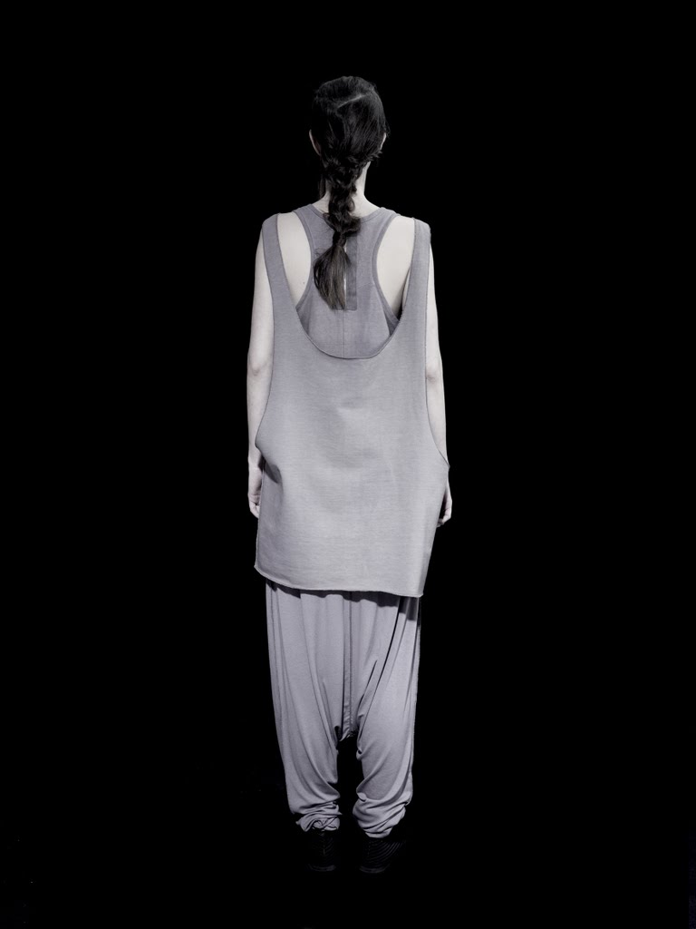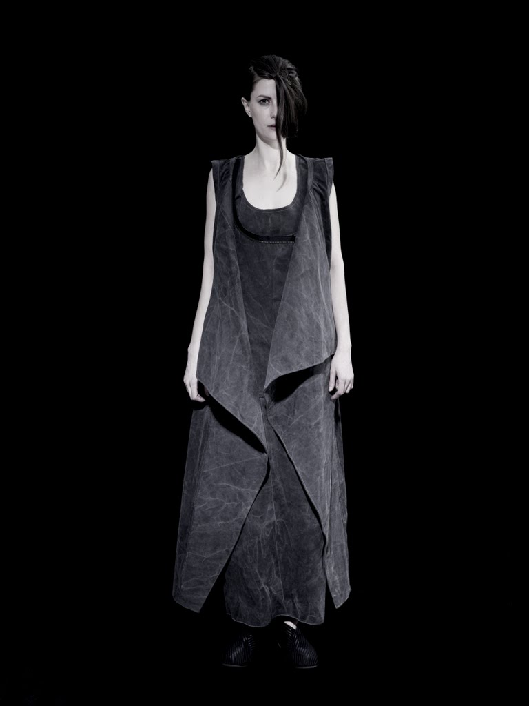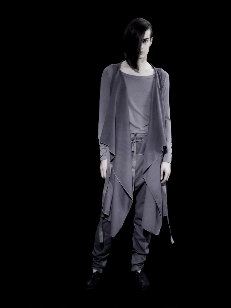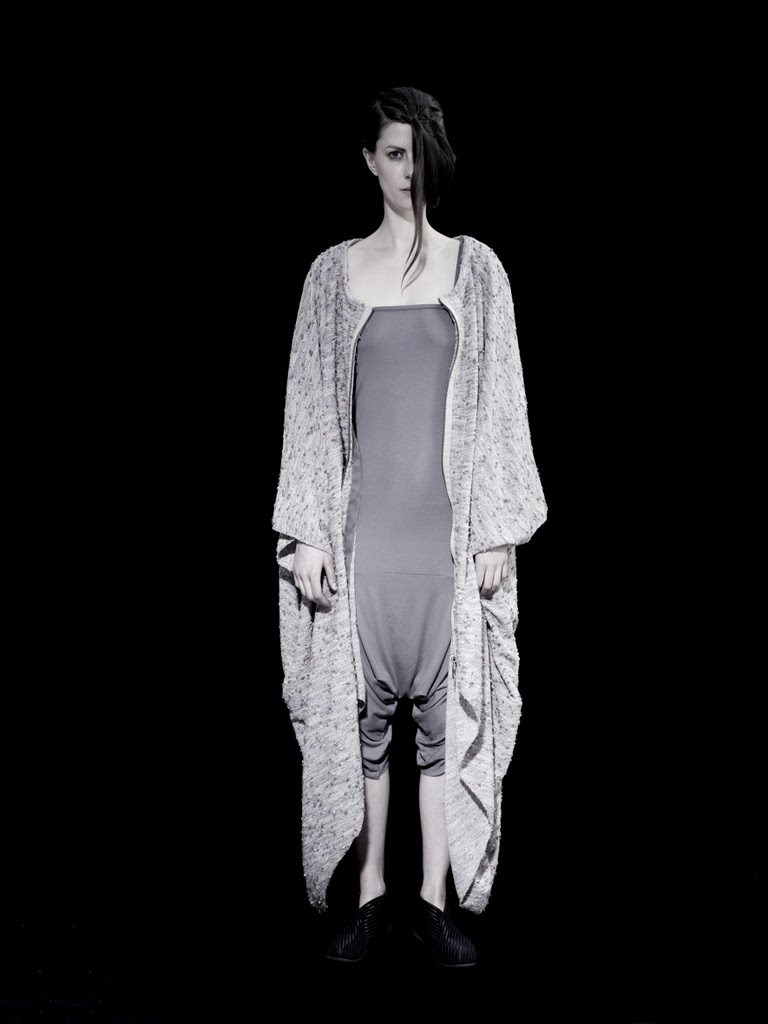 Pamiętacie zimowy katalog Nenukko, nawiązujący do ascetycznego malarstwa niderlandzkiego, gdzie postaci umieszczone były na ciemnym tle? Pisałam o nim tutaj, a dziś przedstawiam Wam najnowszy, wiosenno – letni lookbook marki. Patrząc na zdjęcia myślę o pewnej brytyjskiej firmie BodyMap, która w latach 80’tych XX wieku podbijała serca swoimi dzianinowymi dziełami sztuki. Dzisiaj ich miejsce mogłoby (o ile już tego nie zrobiło) zająć Nenukko. Co tym razem proponuje nam ta niezwykła grupa projektowa, która ponad wszystko pokochała minimalizm w wersji unisex? Przede wszystkim dzianiny w stonowanych kolorach – jakby na przekór typowo letnim trendom – czerni, szarościach, grafitach. Piękne, lejące się tkaniny, geometrię godną mistrzów japońskiego krawiectwa, ekstrawagancję i to, co w modzie najważniejsze – absolutną wygodę. „Idea kolekcji Empty Set nawiązuje do matematycznego termin zbioru pustego – zbioru o wartości zerowej, obojętnej, niedodatniej i nieujemnej. Ta szczególna właściwość pozwala na tworzenie metaforycznych odniesień do obszaru ludzkiej seksualności.” – sugeruje Nenukko. Unisex jest tu widoczny w każdym projekcie, w każdym elemencie. Powłóczysty płaszcz założyłby zarówno mężczyzna, jak i kobieta; podobnie kamizelki, spodnie, bluzy. Moim faworytem jest długi, melanżowy sweter, który utkwił mi w pamięci po pokazie podczas Łódzkiego Tygodnia Mody. Wspaniały! Zresztą, jak cała kolekcja.