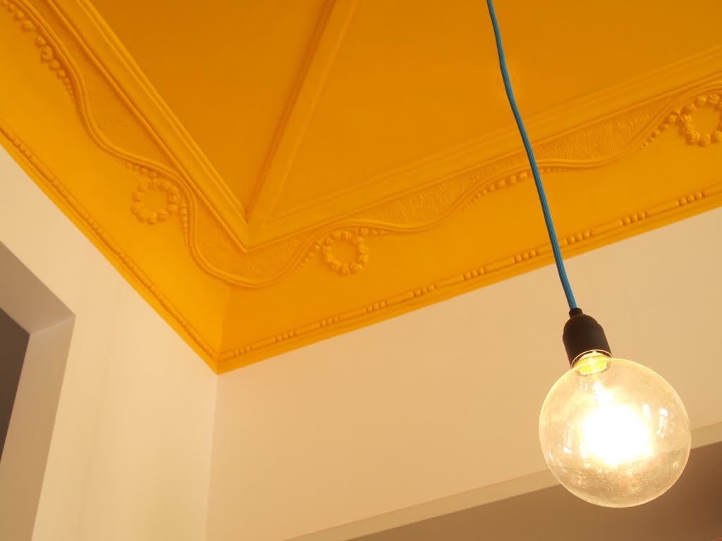 Biorę kota! Szaleństwo, super wygląda żółty sufit… to chyba tak btw moich ostatnich przemyśleń pt. „dlaczego sufity zawsze są białe”. I oto odpowiedź – nie zawsze. Bez sufitu i lamp byłoby chyba zbyt zwyczajnie. No i zastępuje słońce;)