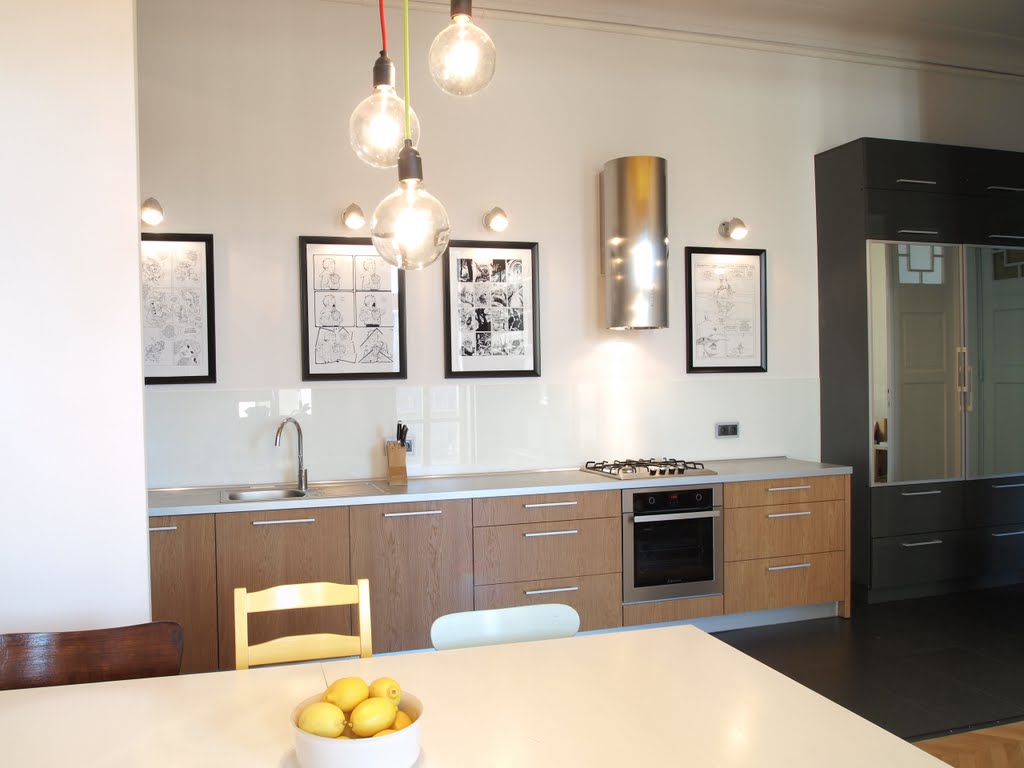 Pamiętacie pewien łódzki antykwariat w kolorze limonkowym projektu Agaty Maciejewskiej (publiczności blogowej znanej również pod pseudonimem Agatiszka) i Jana Katyszewskiego ze studia Hokum? Tym razem para architektów powraca z równie energetycznym wnętrzem potwierdzającym, że w Polce potrafimy i chcemy ładnie mieszkać. Dzisiejsze miejsce akcji to ponad stuletnia kamienica znajdująca się w samym sercu Łodzi, na ulicy Piotrkowskiej. Właściciele, młoda para i kot, do zaadoptowania mieli dość niefortunnie zaprojektowane lokum. Kuchnia, która dzisiaj otwiera się na salon, była kiedyś długim korytarzem oświetlonym tylko oknem świetlika. Urządzono ją w prostym stylu, tak, żeby wydawała się być integralną częścią tego przestronnego pomieszczenia. Piec ukryto w szafce, po której można pisać kredą. Na co dzień służy więc jako idealne miejsce do zapisywania przepisów kulinarnych.